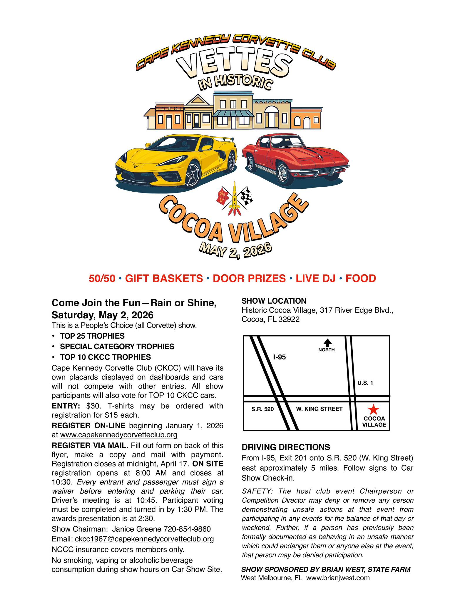 Cape Kennedy Vettes in History Cocoa Village 8:00 am – 3:00 pmMay 2, 2026 Historic Downtown Cocoa Village434 Delannoy AveCocoa, FL 32922View LocationMap Historic Downtown Cocoa Village More information https://www.capekennedycorvetteclub.org/ckcc-store iCal Google View full calendar