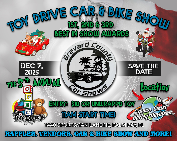 Toy Drive Car and Bike Show 11:00 am – 12:00 pmDecember 7, 2025 Space Coast Harley Davidson1440 Sportsman Ln NEPalm Bay, FL 32905View LocationMap Space Coast Harley Davidson iCal Google Calendar View full calendar